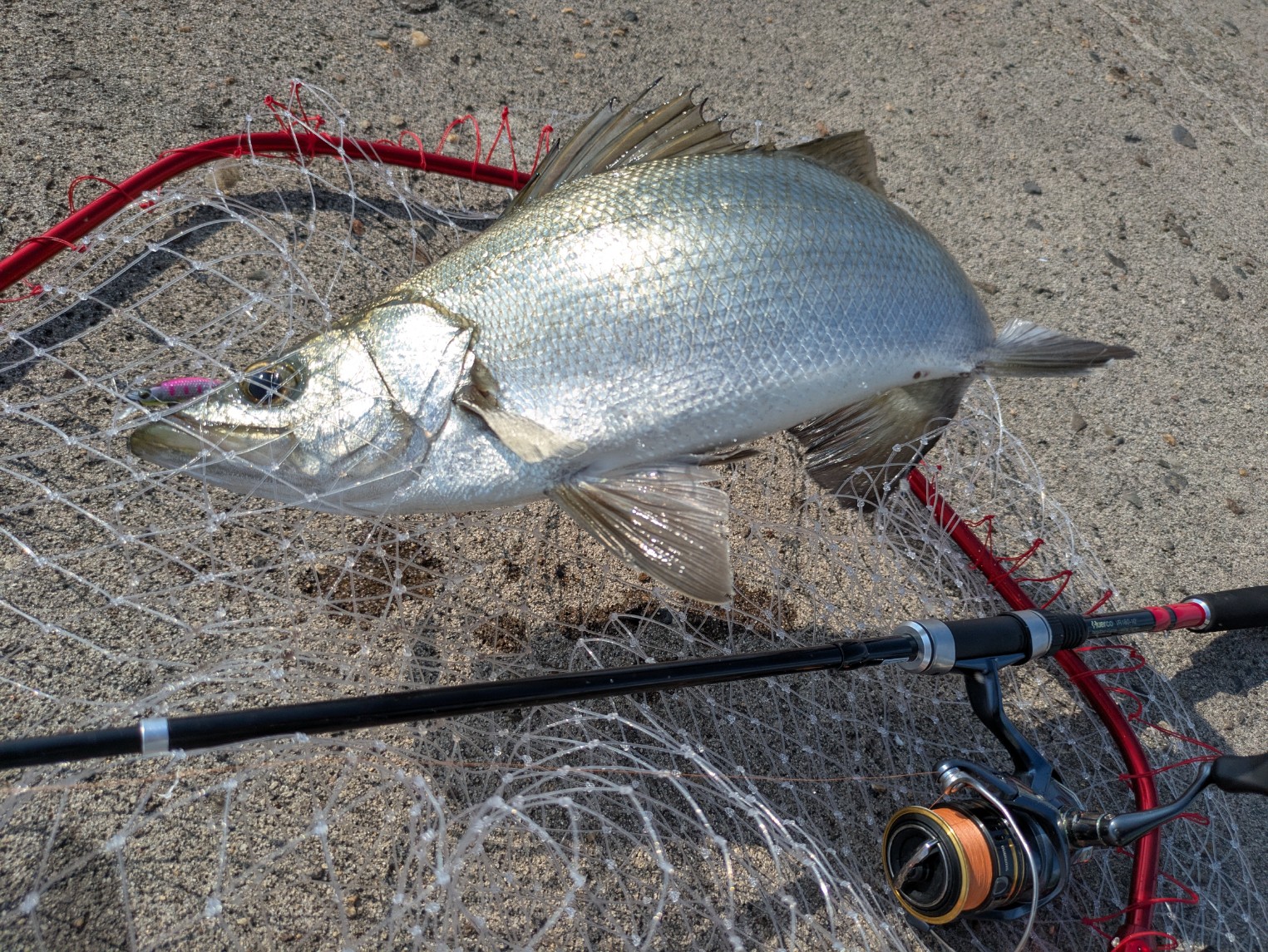 普段はアジングロッドとして使用していますが、小型ミノーをキャストしたくて登板。45cmのヒラスズキもキャッチできました。