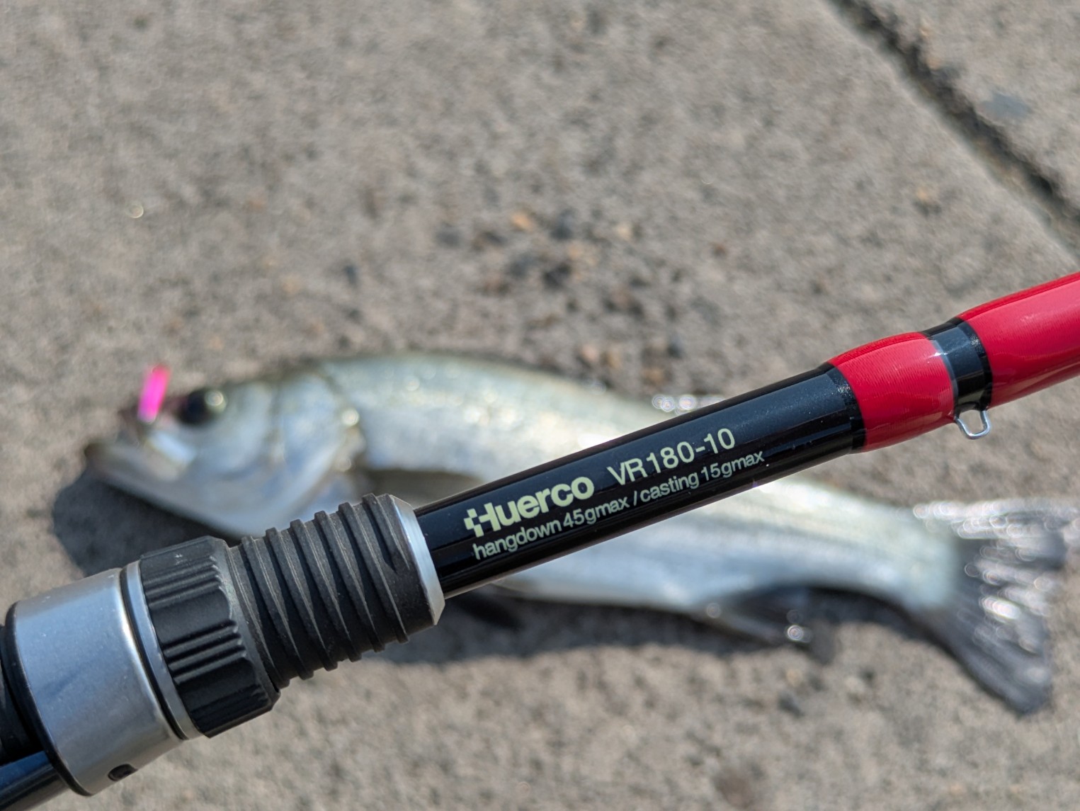 使用したロッドは、HUERCOのVR180-10です。テレスコピックが好きなのでここ数年ずっと使っておりますが、粘りのあるブランクスで大型のツッコミも柔らかくいなしてくれます。