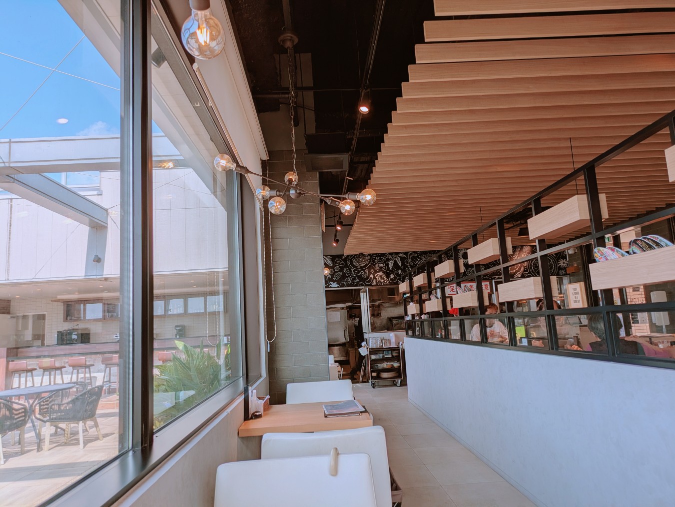 大きな窓が気持ちの良い店内は、テーブル席を中心に50席程度ありそうな広さです。BGMは洋楽のポップス。お客さんの層はご婦人のグループが多めでした。かのやバラ園の徒歩圏内だから、ということもありそうです。
