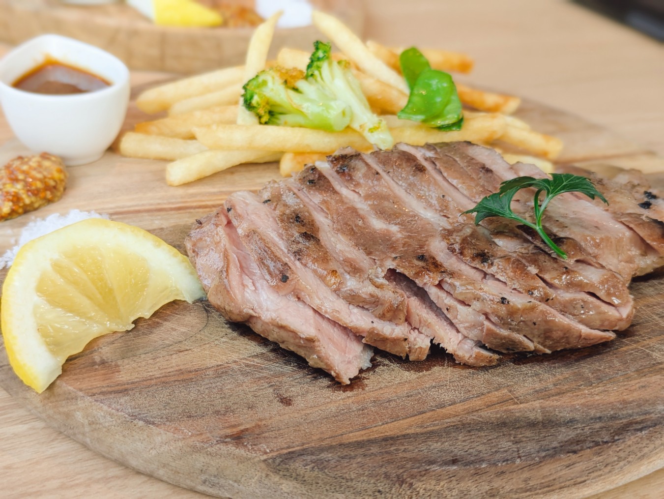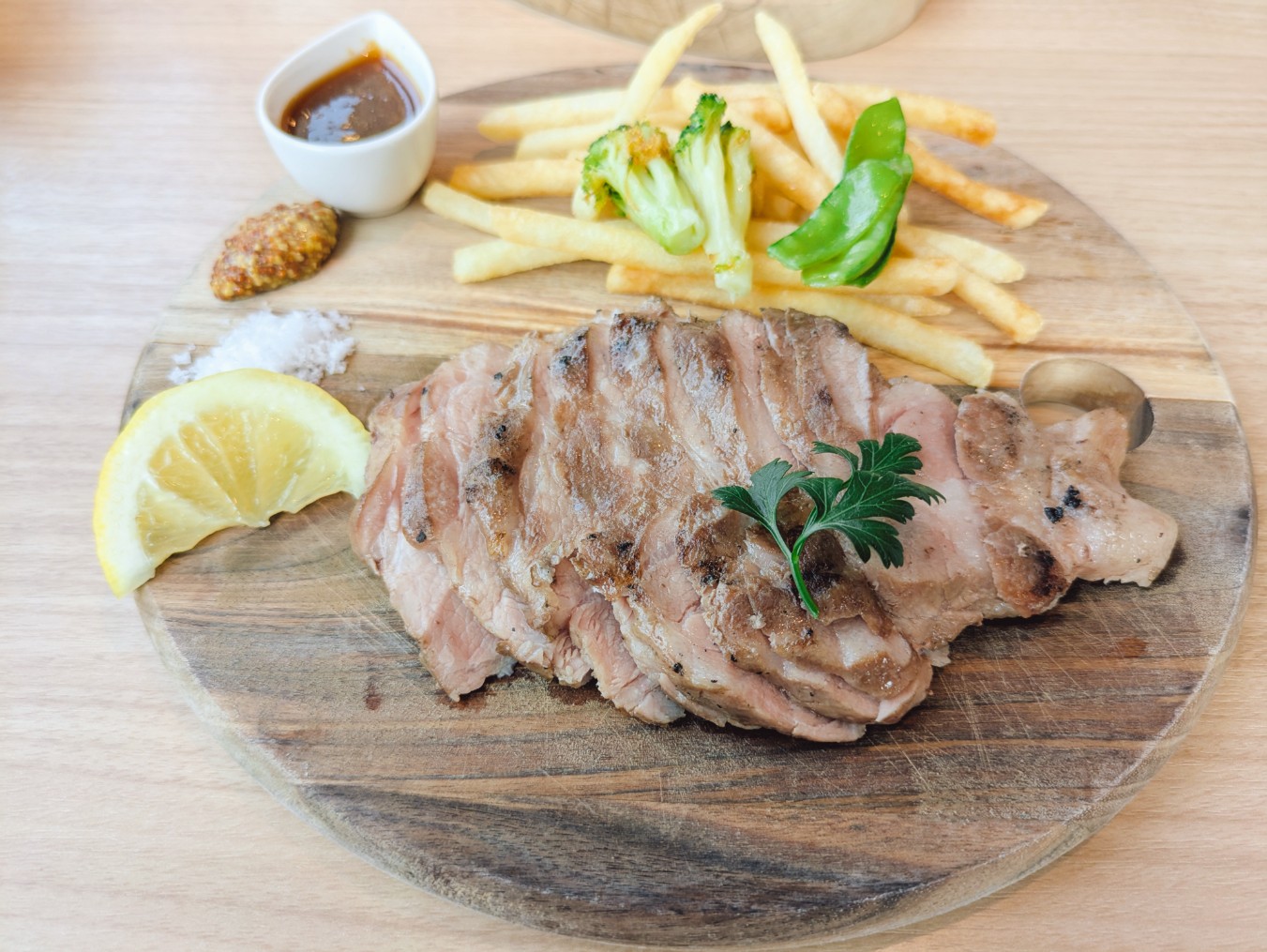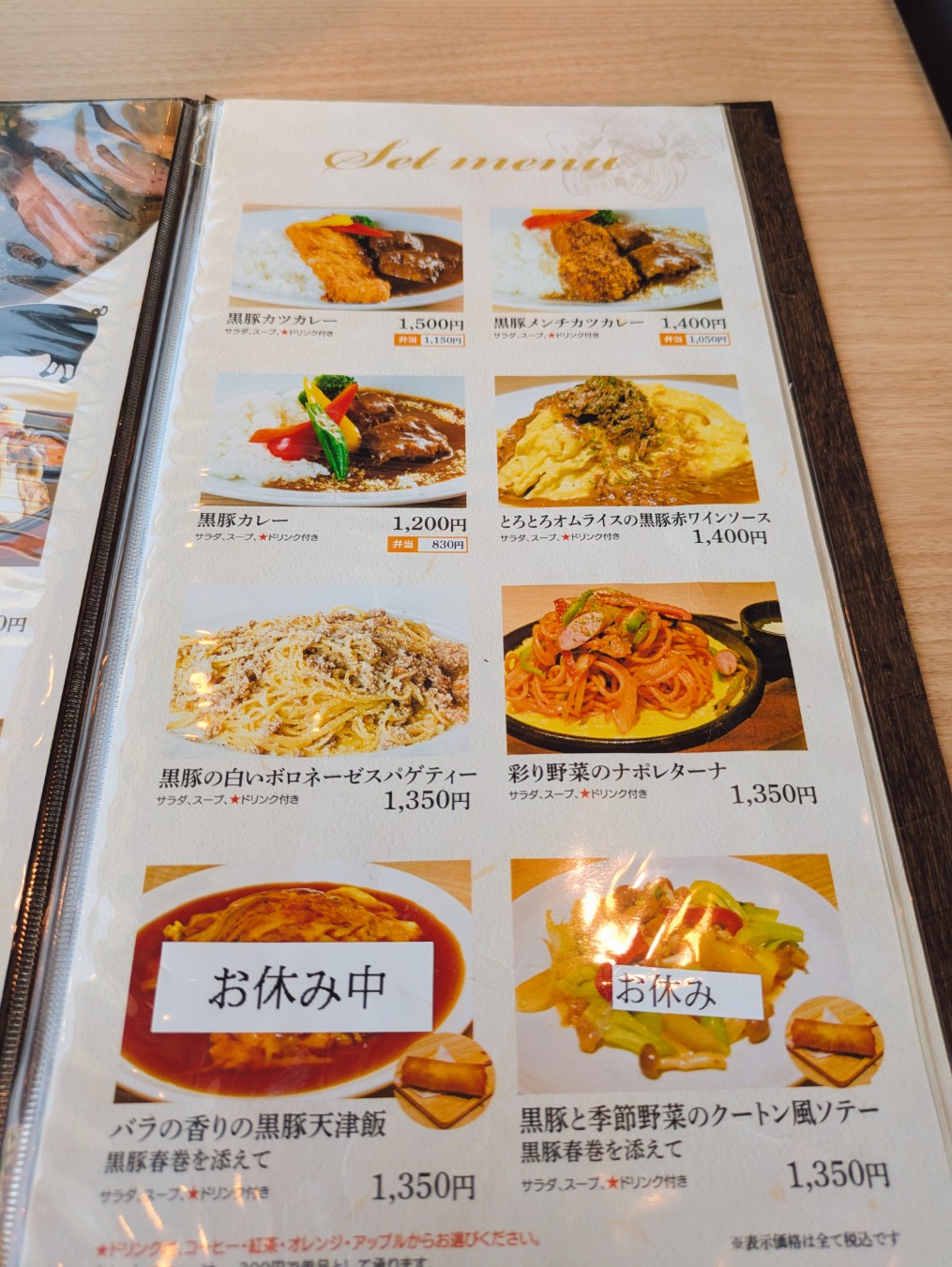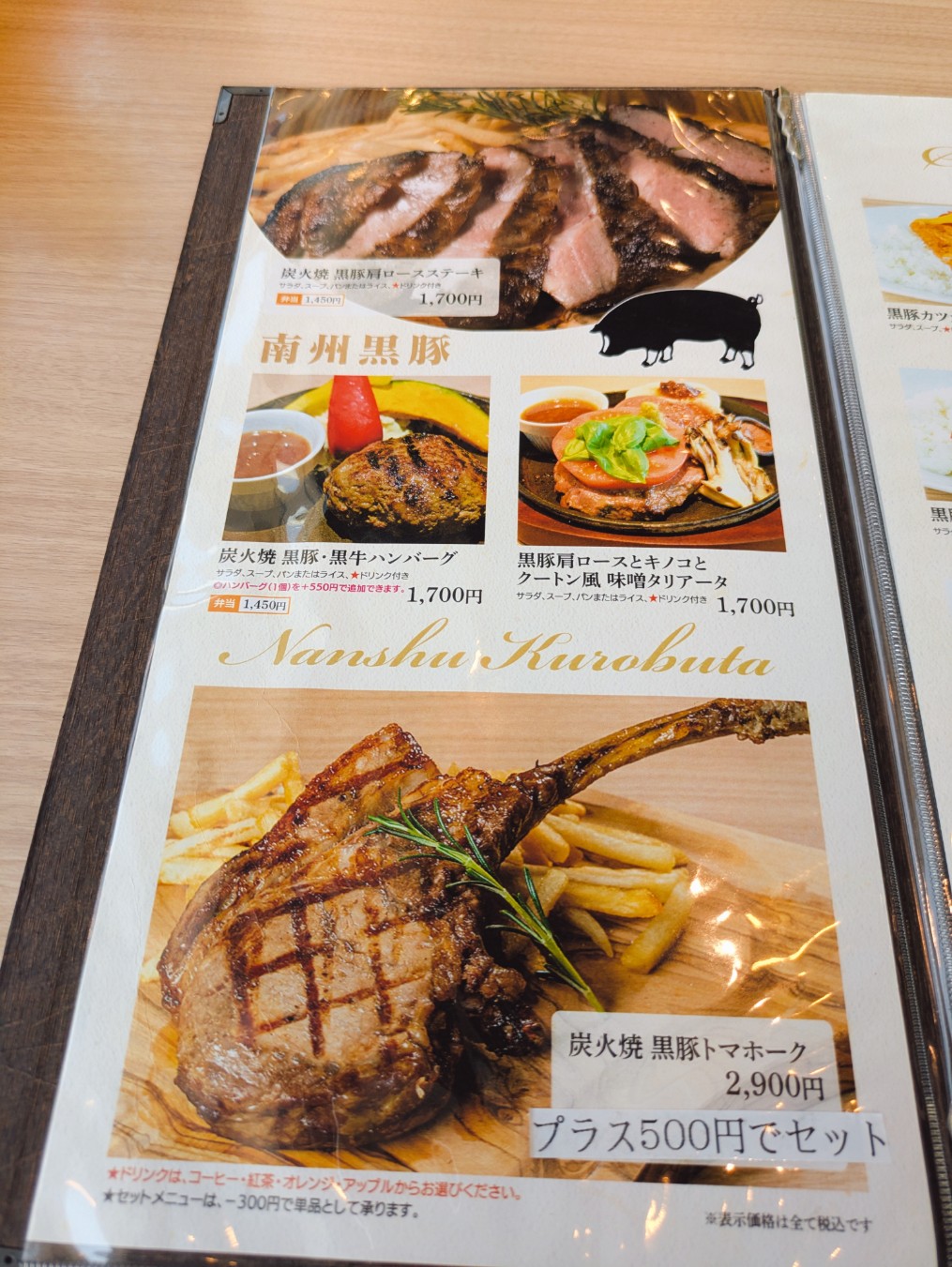 メニューはお肉とイタリアンが中心。炭火焼黒豚肩ロースステーキは、一番人気だそうです。