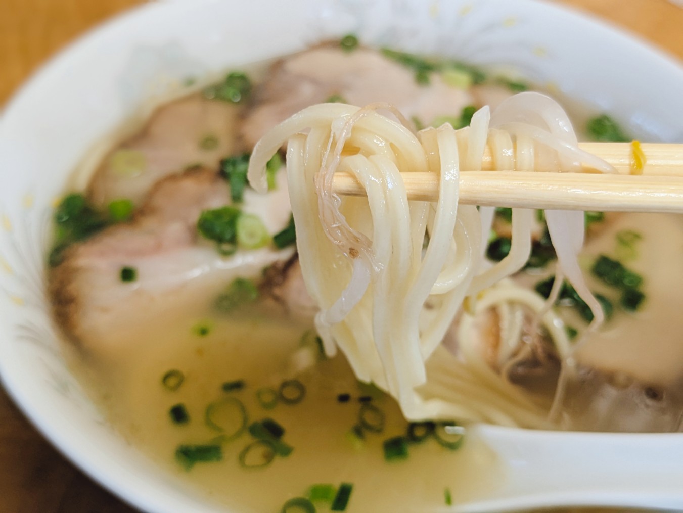 スープはあっさりしつつまろやかな旨味のある塩とんこつです。