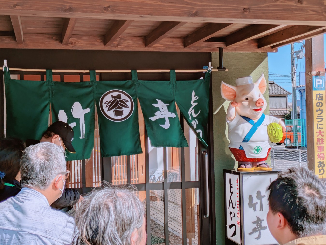 竹亭は超人気店なので、開店前からとにかく並びます。11時30分の開店前を目指して、平日11時15分に訪問すると、既に先客が8名。地元のご夫婦や家族連れの方々が多くいらっしゃいました。待っている間に、厨房から漂ってくる揚げ油の香りが鼻をくすぐります。