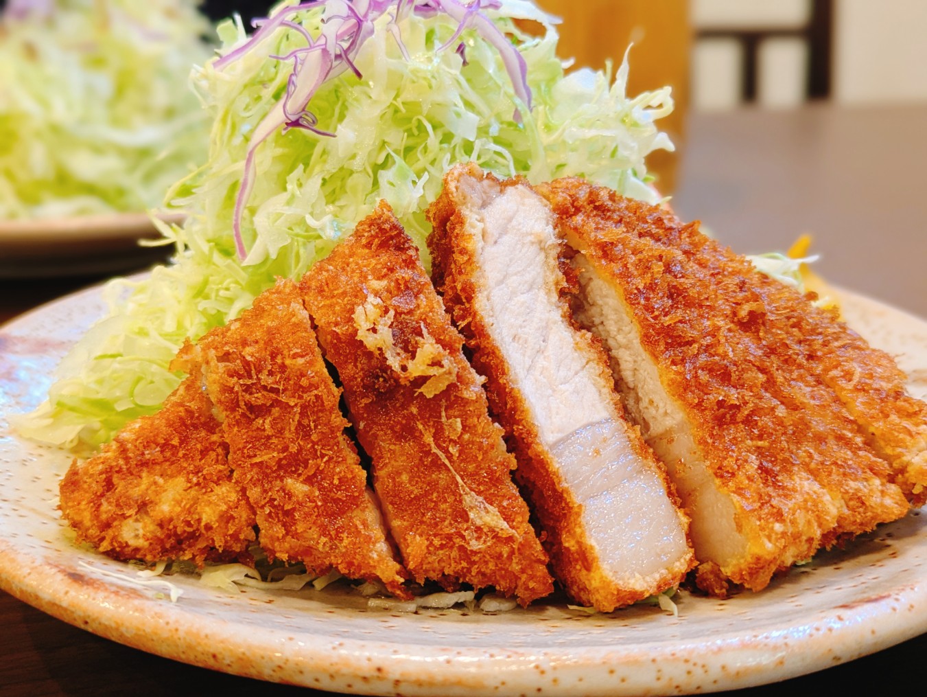 店内は広く、オープンキッチン型のカウンター、お座敷、テーブル席です。厨房のライブ感が見えるカウンターは人気席のようです。とんかつの揚げ終わりを待つ山盛りキャベツたちが見えて、ちょっとテンションが上がります。といいつつ、今回はテーブル席に着きました。ベテランの店員さんたちがテキパキと誘導してくださるので、めちゃくちゃ安心感があります。
