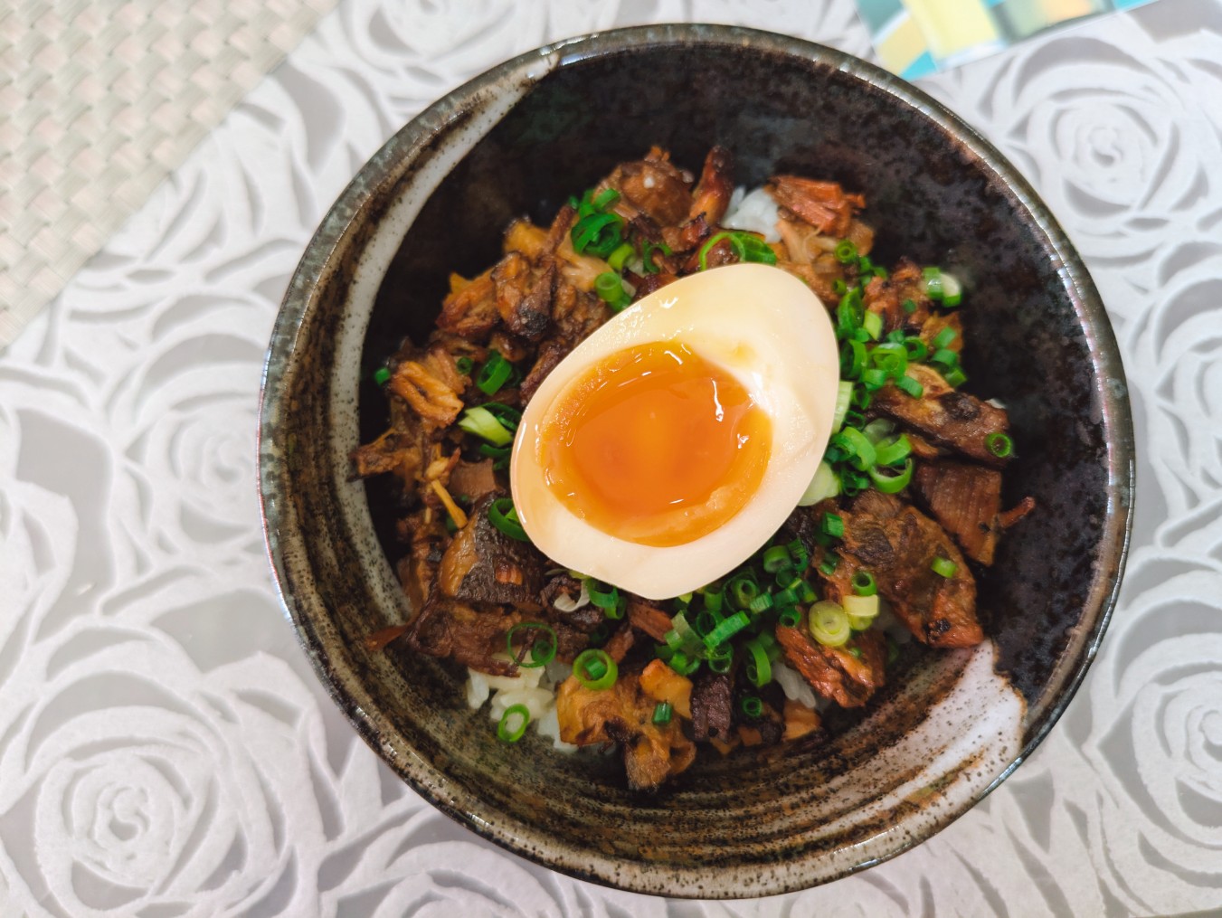 こちらはチャーシュー飯。しっかり味玉も乗っているのが嬉しいですね。