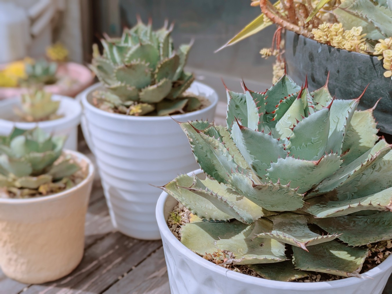 お店の前の喫煙テラスでは、立派なアガベが育てられていました。